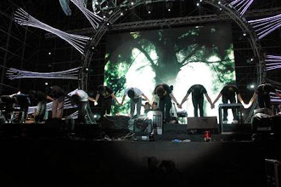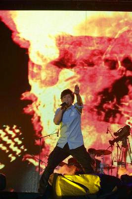 昨晚的演唱会还准备了一道视觉大餐。在演唱《DNA》的时候,舞台上的巨型屏幕缓缓拉开,五月 天在北京舞台上的“第六位成员”——一个身高近10米的变形金刚跳入众人眼帘,满场一阵惊呼。在这位特殊嘉宾的陪伴下,五月天演唱了《雌雄同体》《离开地 球表面》及《如烟》等歌曲。因为场地对时间的严格限制,经常超时被罚的五月天昨晚10点半乖乖退场。